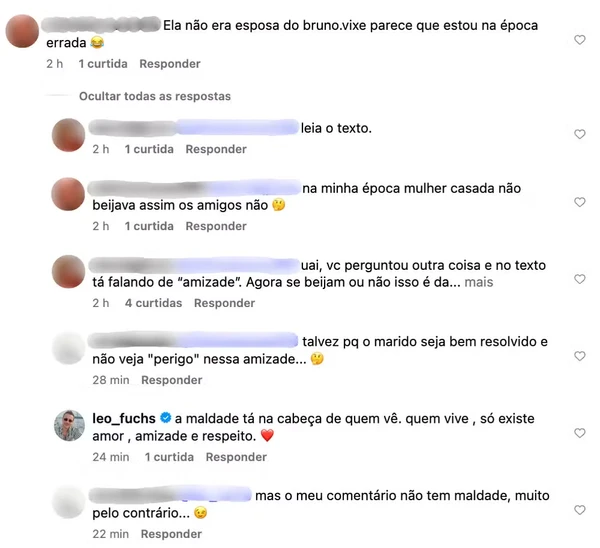 Diante da repercussão, Leo fez questão de esclarecer a situação e minimizar as especulações. “A maldade tá na cabeça de quem vê. Quem vive, só existe amor, amizade e respeito”, escreveu nos comentários da própria publicação, destacando que o gesto não tinha conotação romântica. Ele também aproveitou o texto da homenagem para relembrar momentos importantes da longa amizade com a atriz, incluindo viagens, projetos profissionais e ocasiões familiares que compartilharam ao longo dos anos.